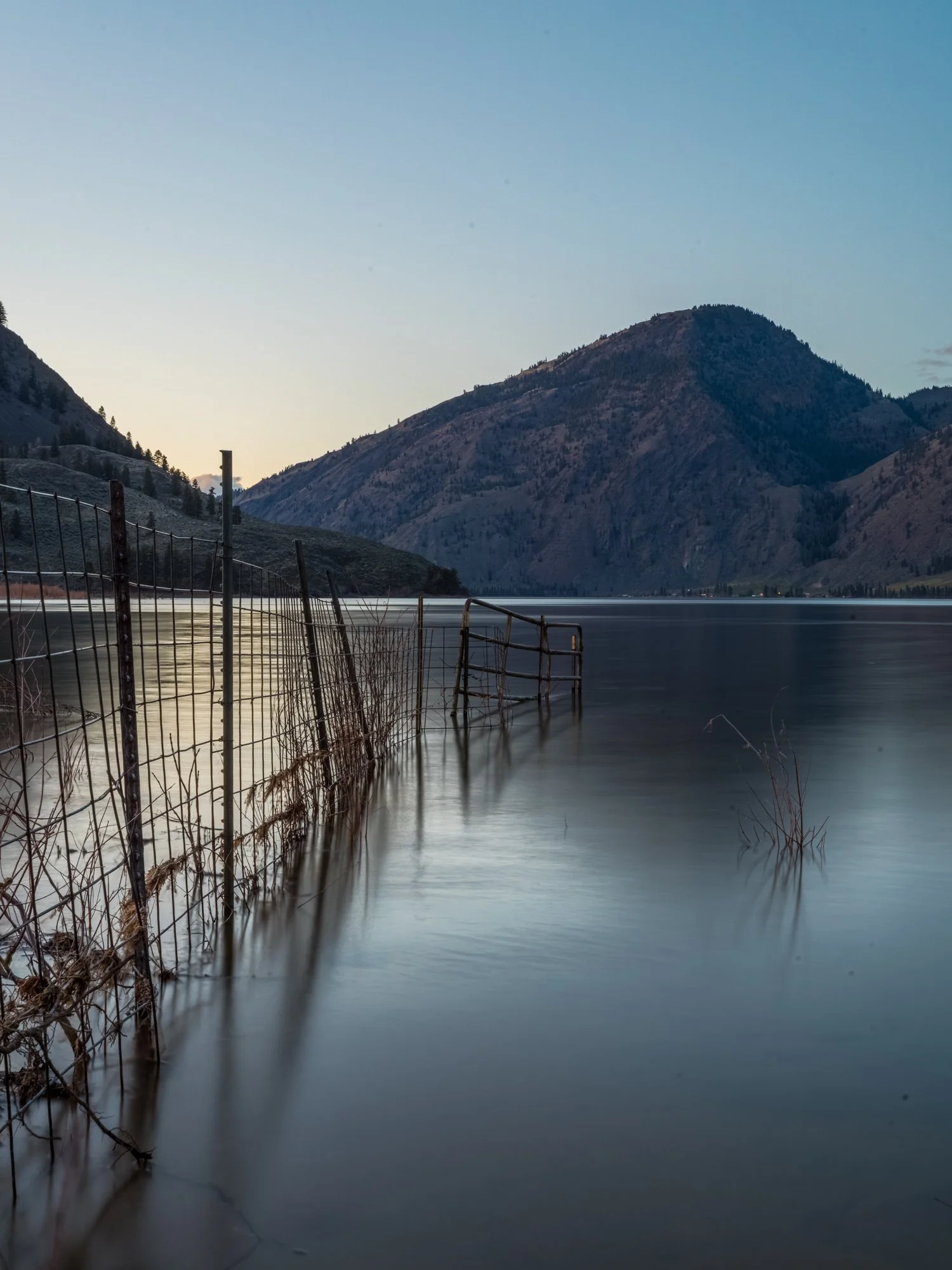 Far from the tragically comic dwellers of big cities of the Pacific Northwest from a small park by a lake, I noticed the end of the fence had a round corner gate, which made me wonder if it was flooded. The sun was low and already behind the hills to the left, but it was still too bright for long exposure. It was probably an hour later when the sky cooled down, and the water below wasn’t too dark, creating the perfect conditions for this photograph.